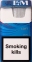 Пачка этих сигарет изготовлена в картонном варианте. Основным цветом служит перламутрово-синий оттенок. В самом верху, белым цветом нанесено название сигарет с логотипом в виде льва.